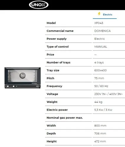 Unox Linemicro Electric Convention Oven XF-043Model: XF043Steam: No